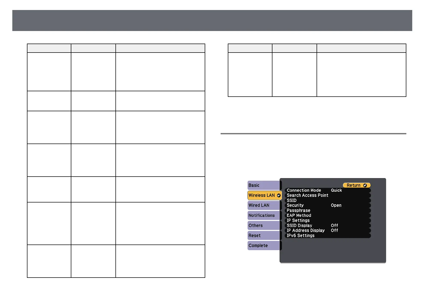Epson EB-X49 - Network Menu - Wireless LAN Menu