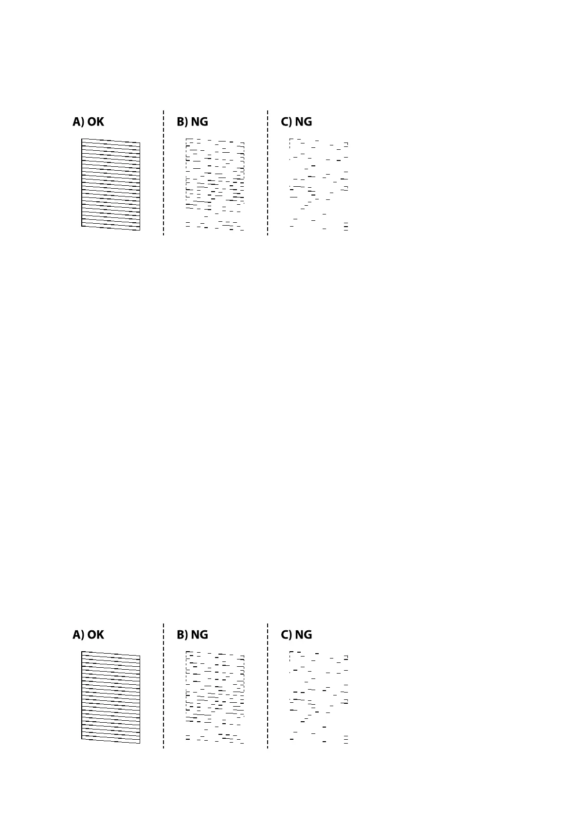 4. Examine the printed pattern, and then perform one of the following options depending on the print results.