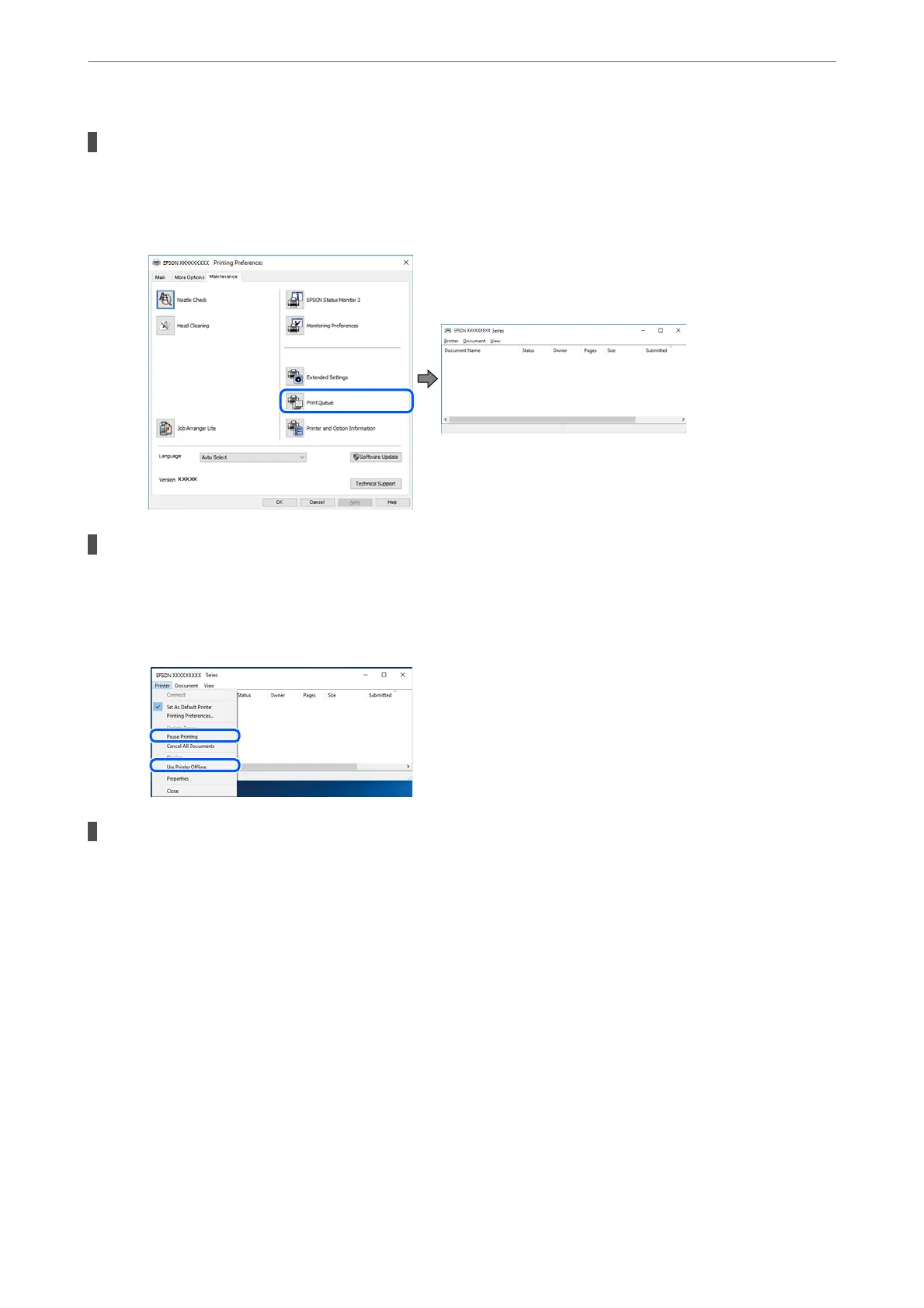 Click Print Queue on the printer driver's Maintenance tab. If unnecessary data remains, select Cancel all