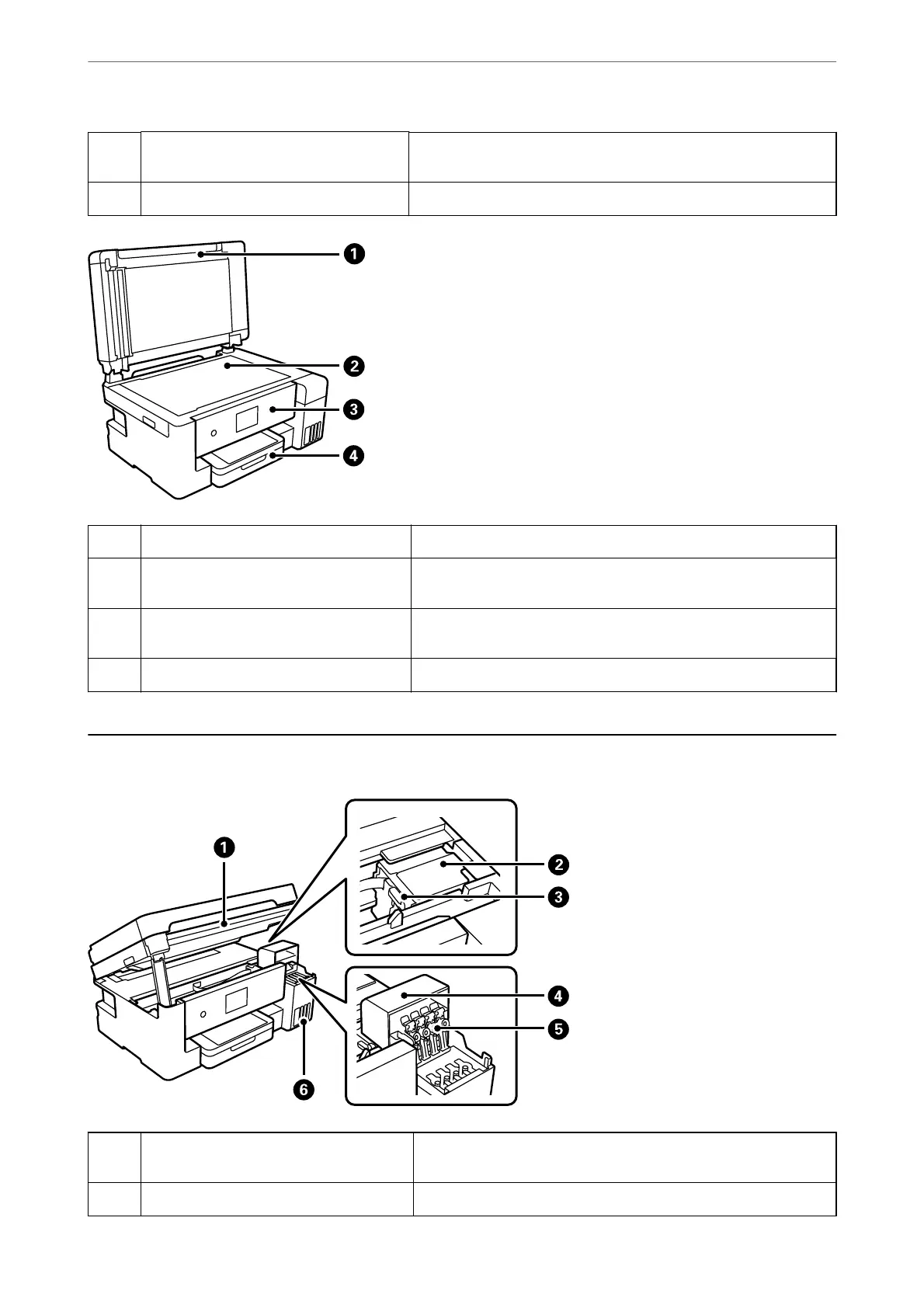 Scanner unit Scans placed originals. Open to rell the ink tank or to remove