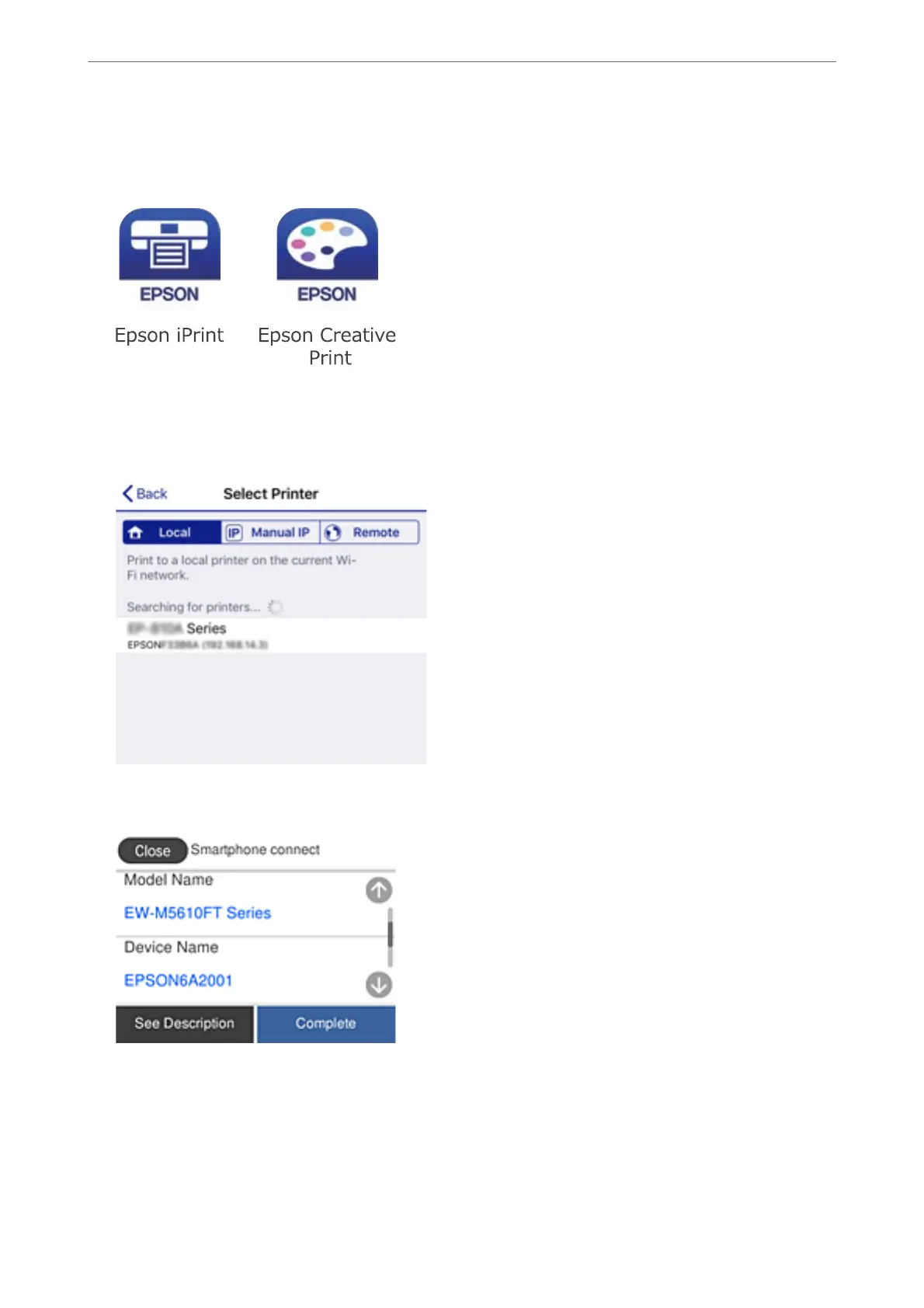 For smart devices that have been connected to the printer before, select the network name (SSID) on the smart