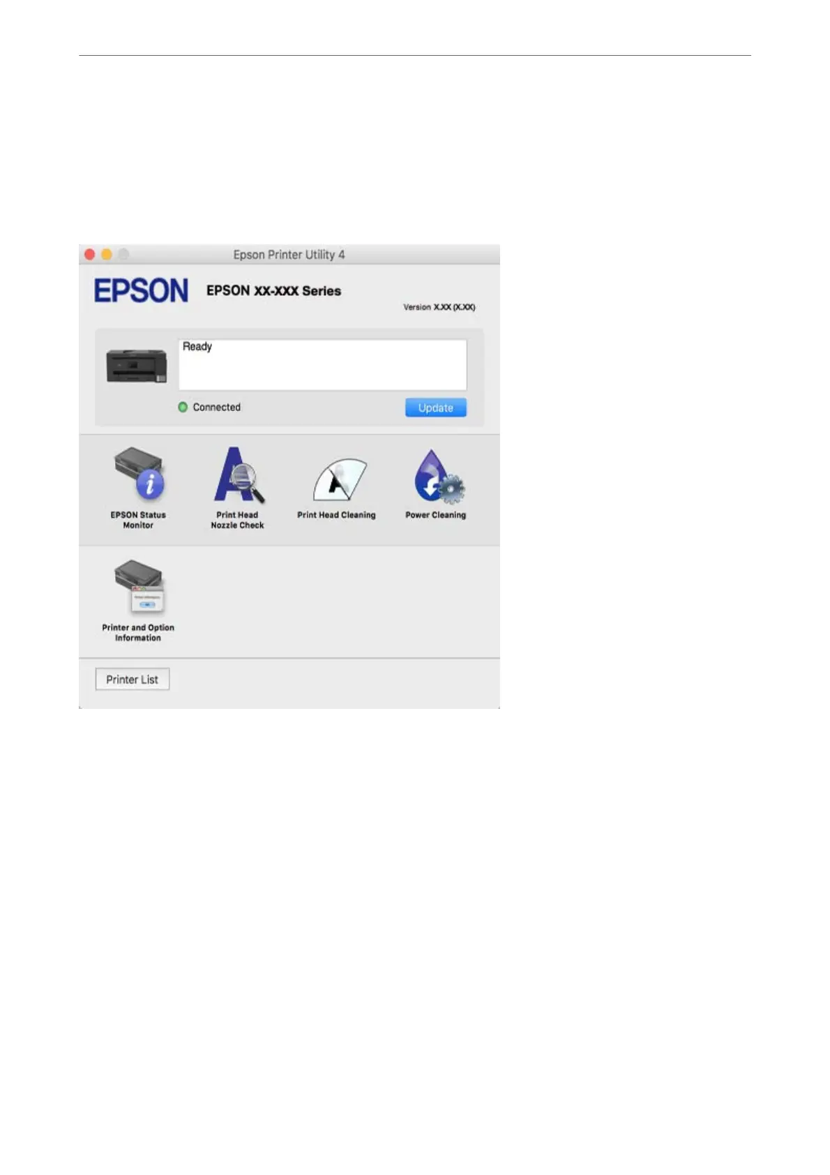 You can run a maintenance feature such as nozzle check and print head cleaning, and by starting EPSON Status