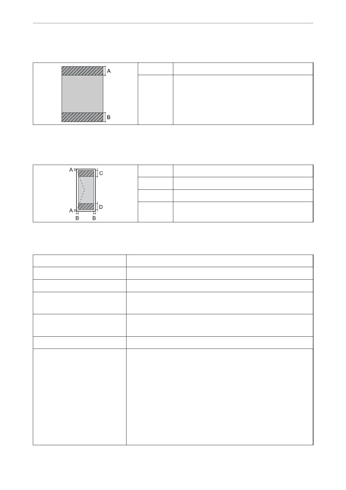 Print quality may decline in the shaded areas due to the printer's mechanism.