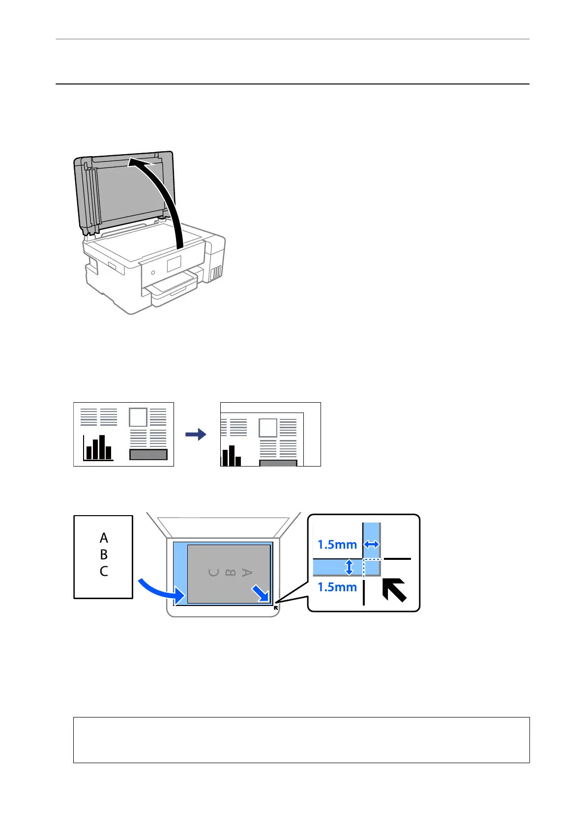 ❏ A range of 1.5 mm from the corner of the scanner glass is not scanned.