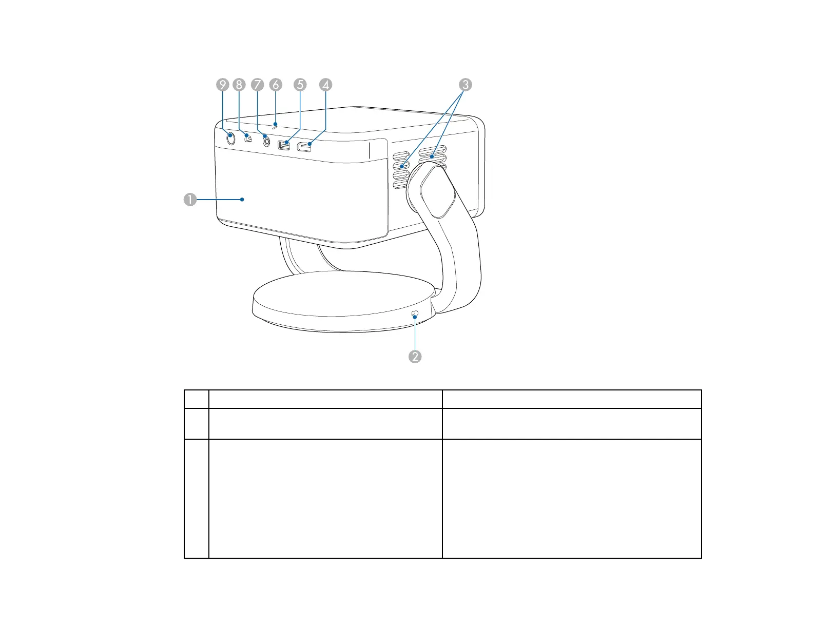 3 Air exhaust vents Exhaust vents for air used to cool the projector