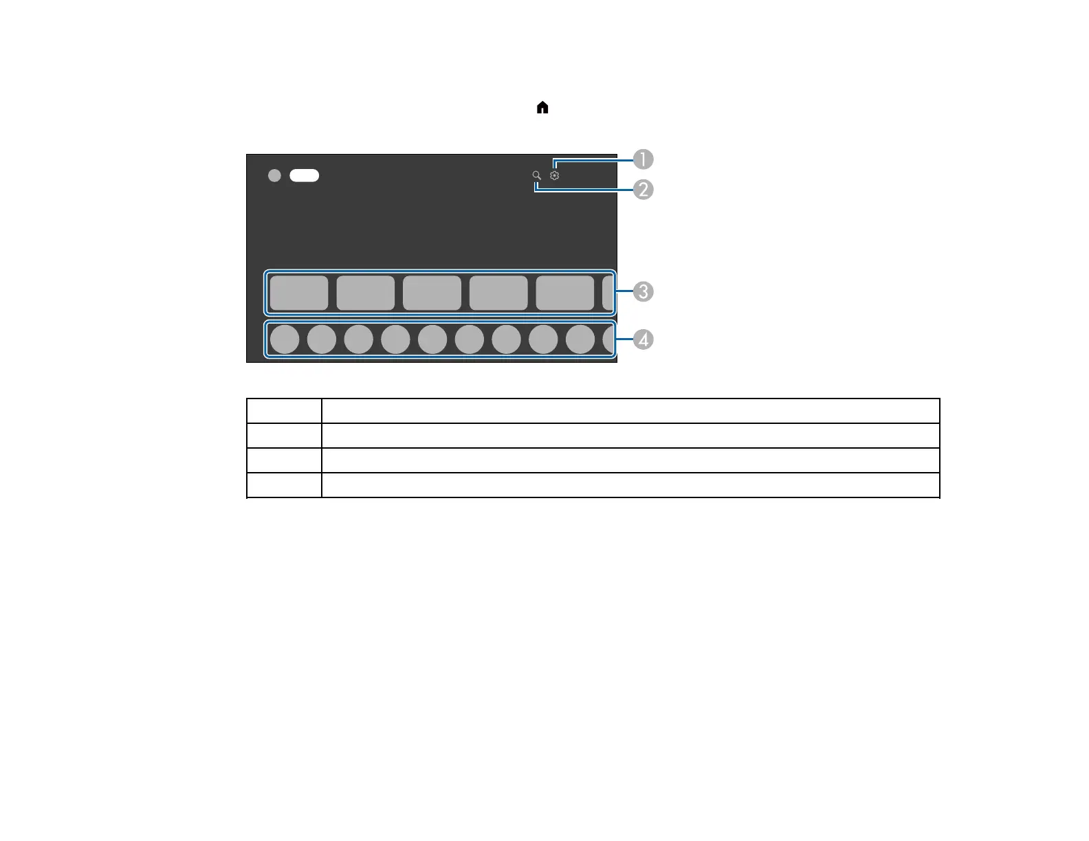 When you turn on the projector or press the home button, the projector displays the Google TV home