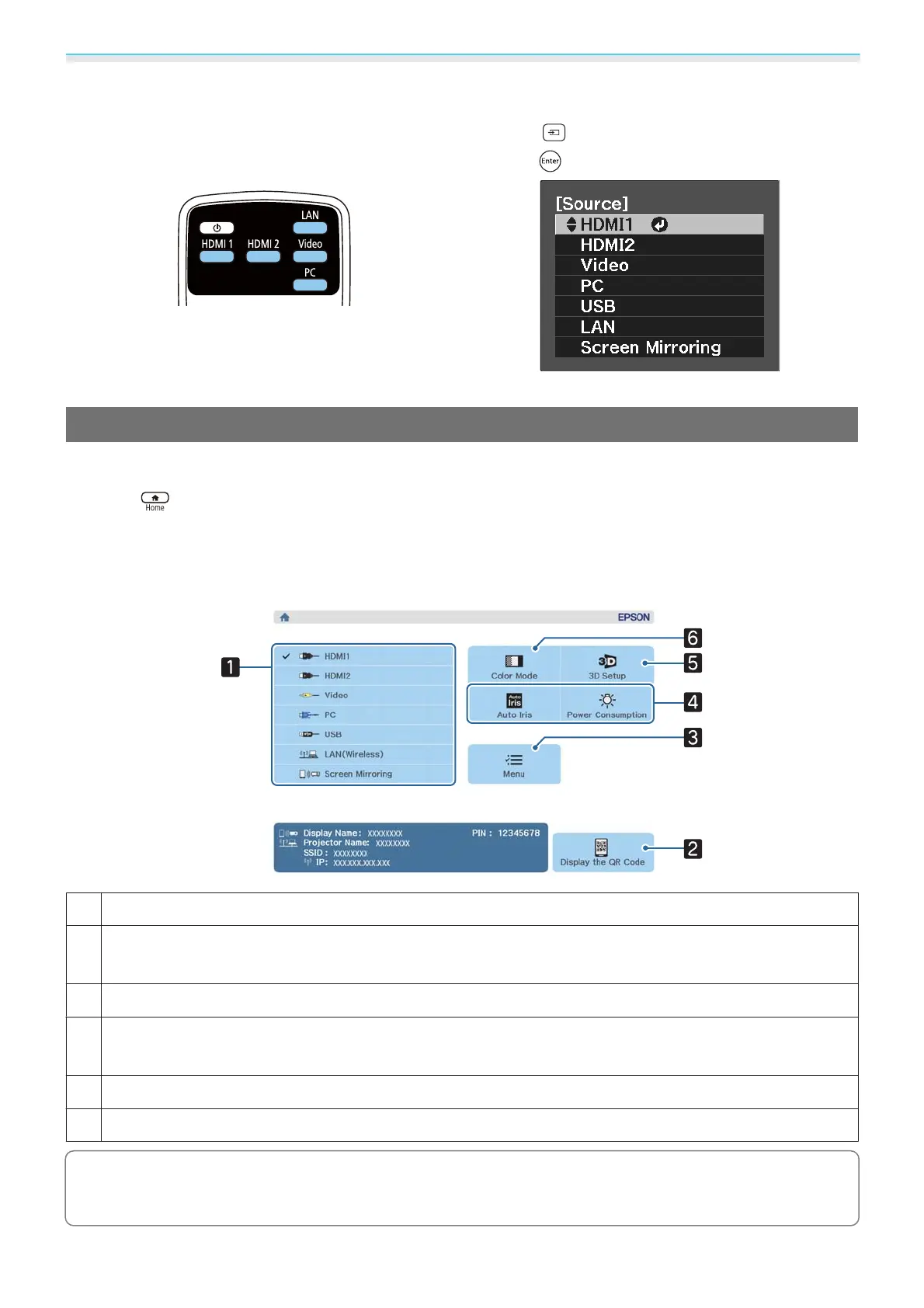 Displays the QR code and connects wirelessly to a smartphone or tablet (EH-TW5350 only).