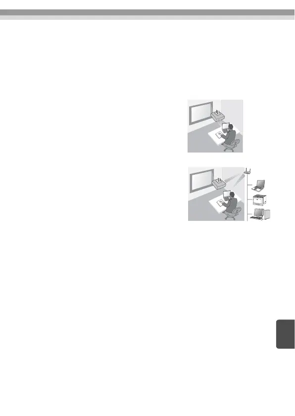 Tämän langattoman lähiverkkoyksikön ansiosta projektori voi olla langattomassa