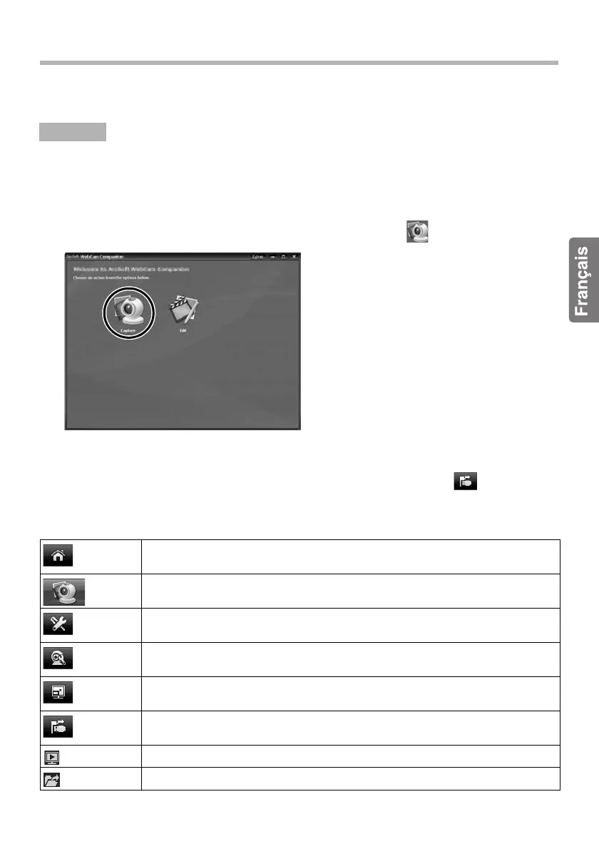 B L'écran de démarrage s'affiche. Cliquez sur « Capture » .