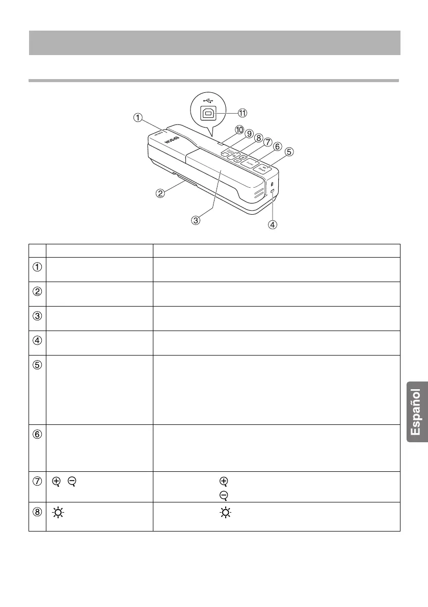 [ ] Pulse el botón [ ] para encender y apagar la lámpara