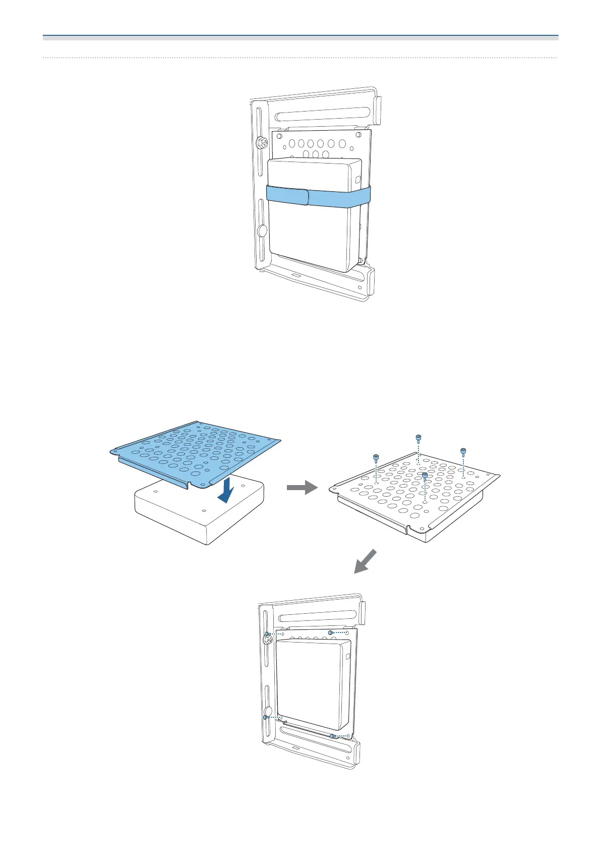 Place the PC on the lower edge of the mini PC plate, and secure it with the belt
