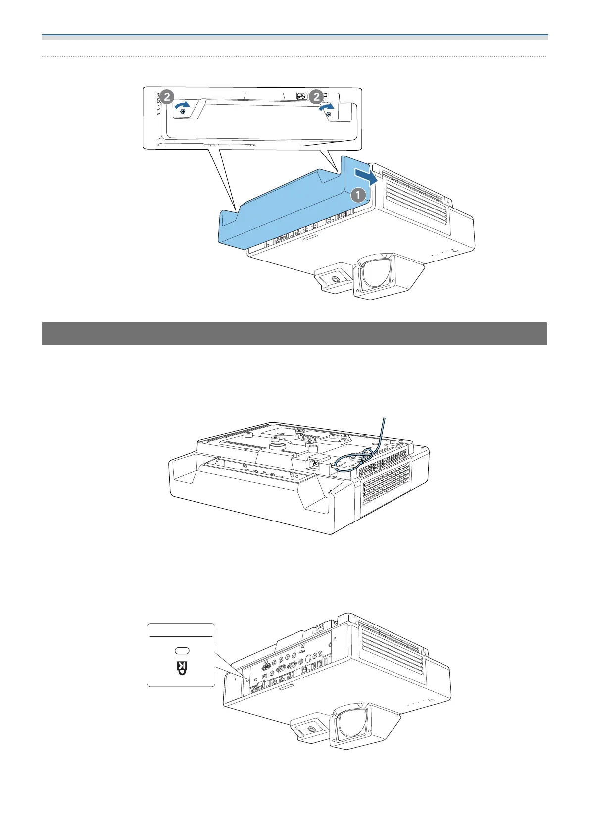 Attach the cable cover to the projector, and then secure it with the screws (x2)