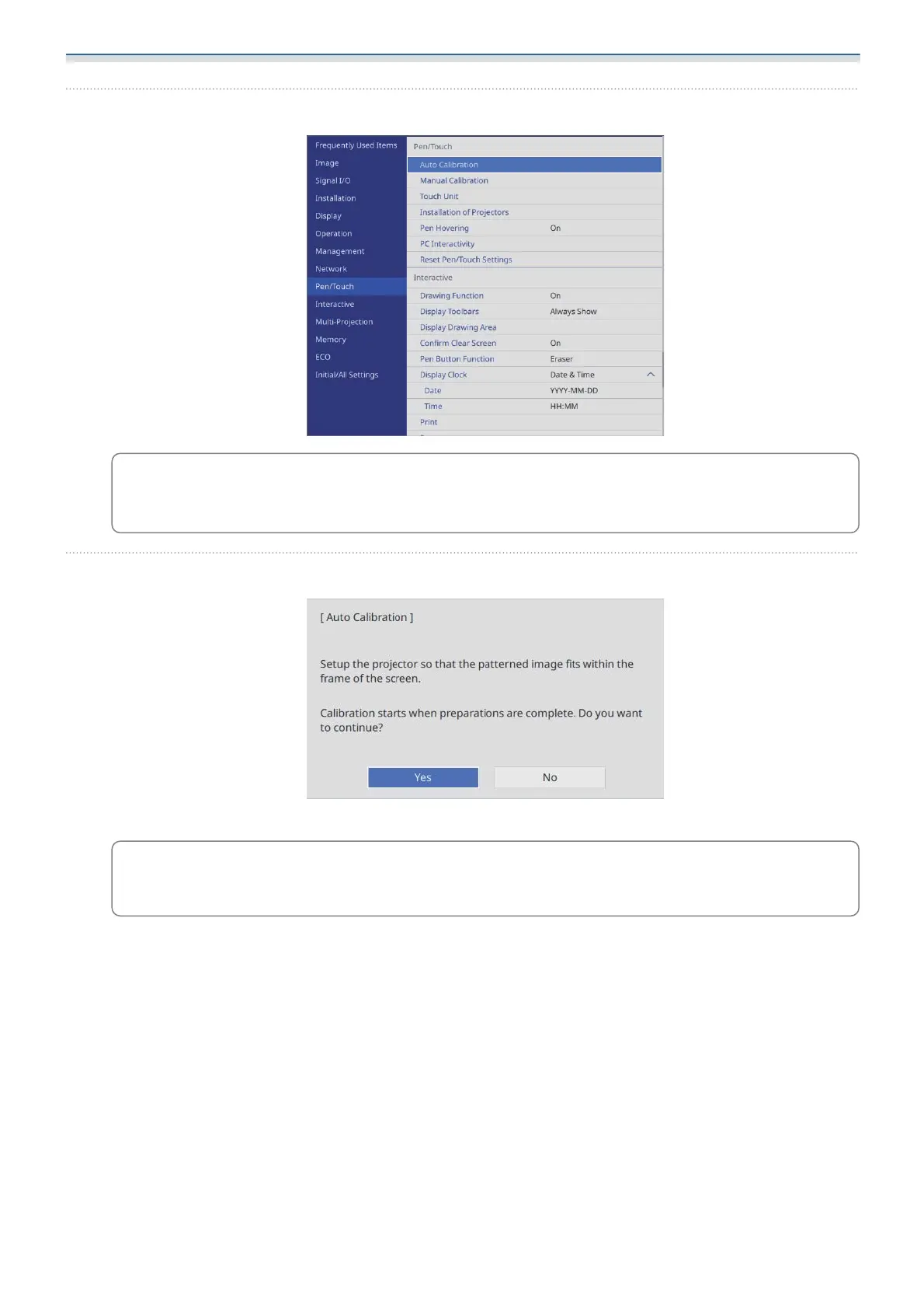 Check that the pattern image fits into the projected image, and then select Yes