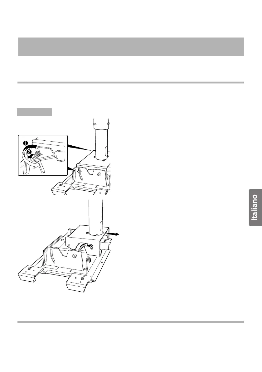 L'elemento di fissaggio al soffitto è montato sull'elemento di sostegno del proiettore in
