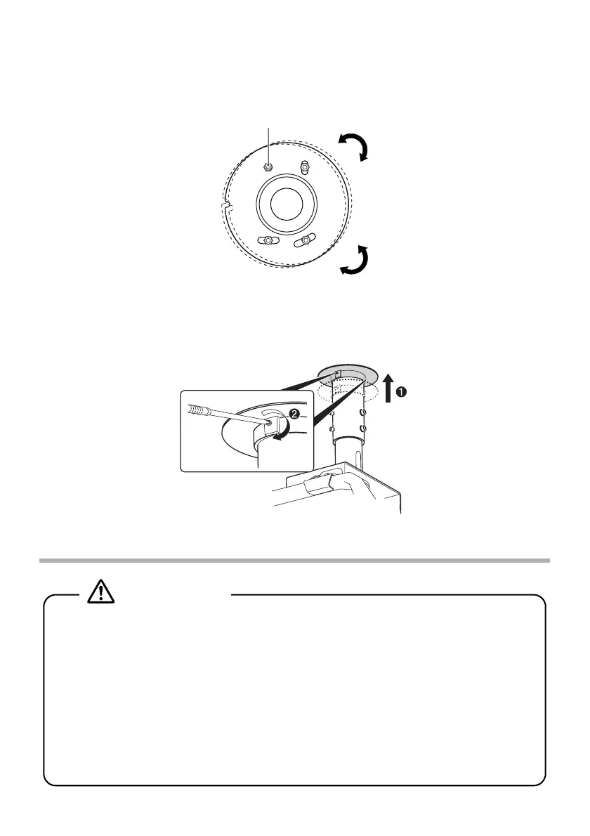 L'elemento di fissaggio al soffitto può essere ruotato orizzontalmente di ±5 gradi. Regolare