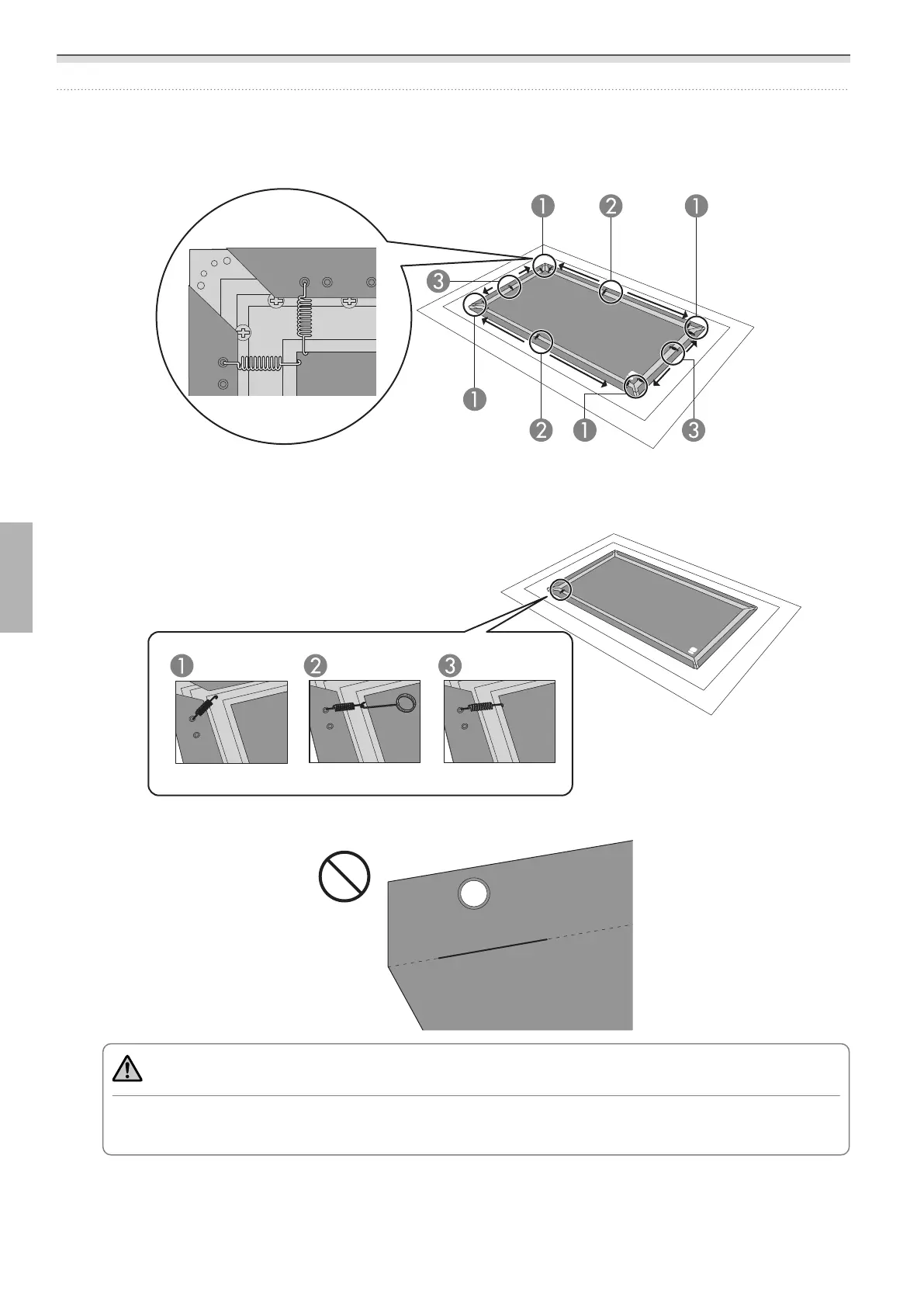 Certifique-se de que fixa as molas usando os ganchos. Se fixar as molas com as mãos desprotegidas,