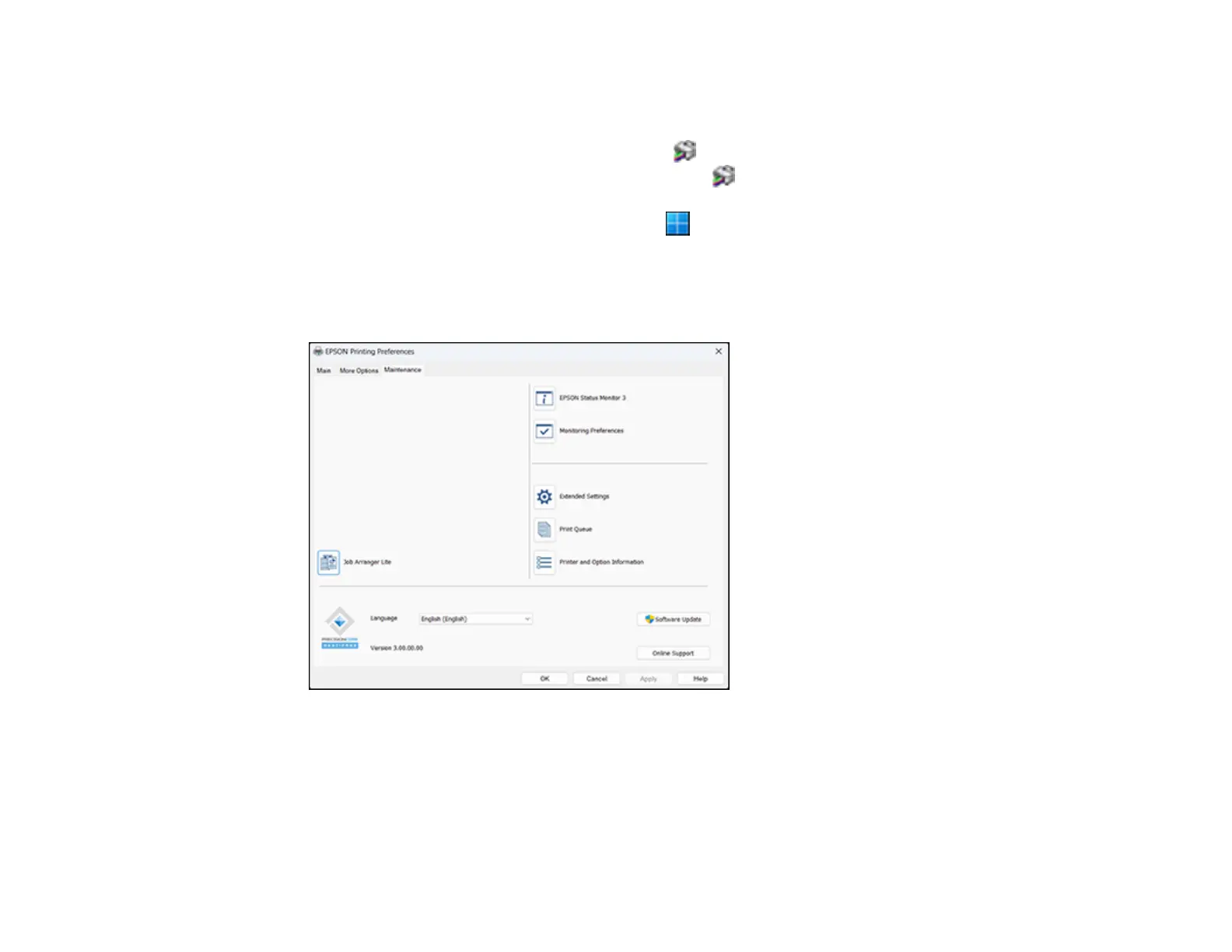 Selecting Extended Settings - Windows