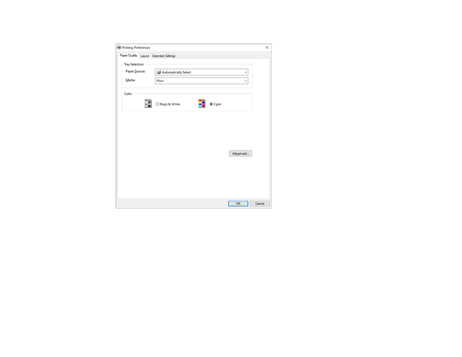 You see the Paper/Quality tab of your printer settings window: