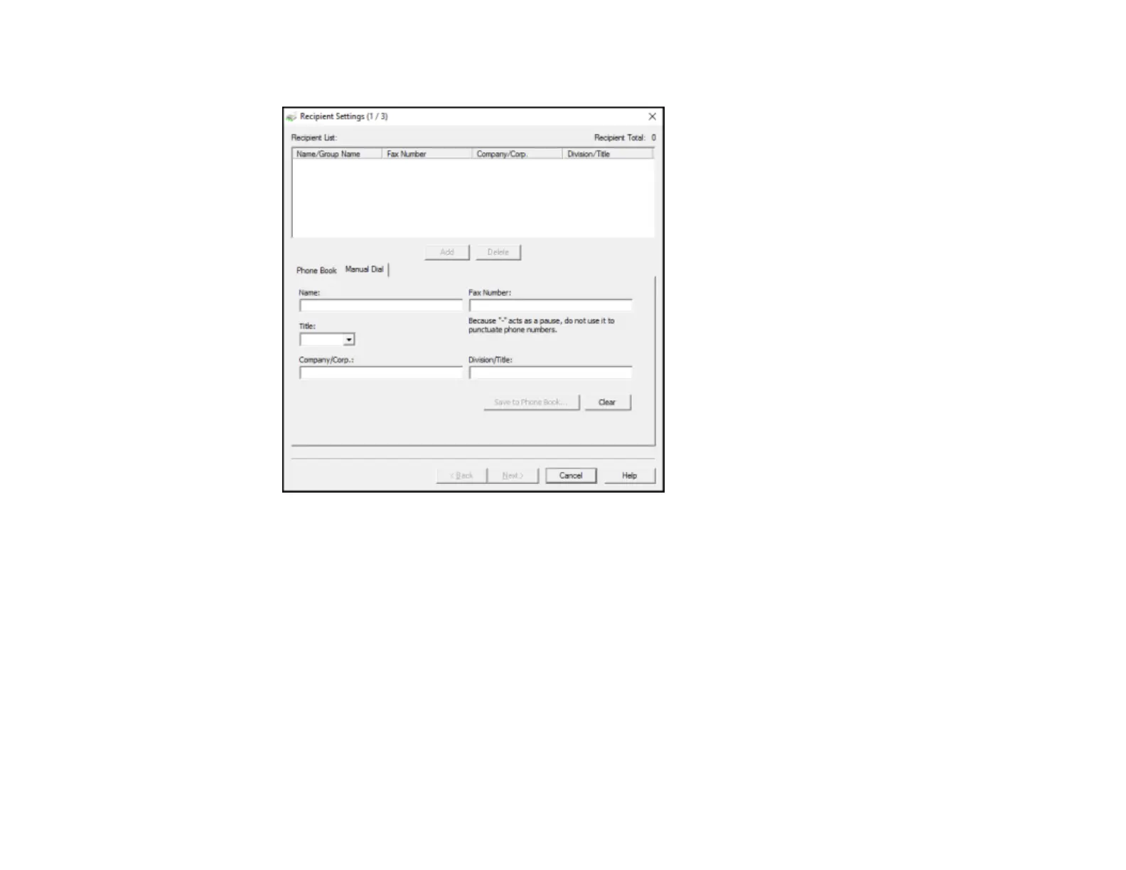 Note: For detailed instructions on using the Epson FAX Utility, click Help.