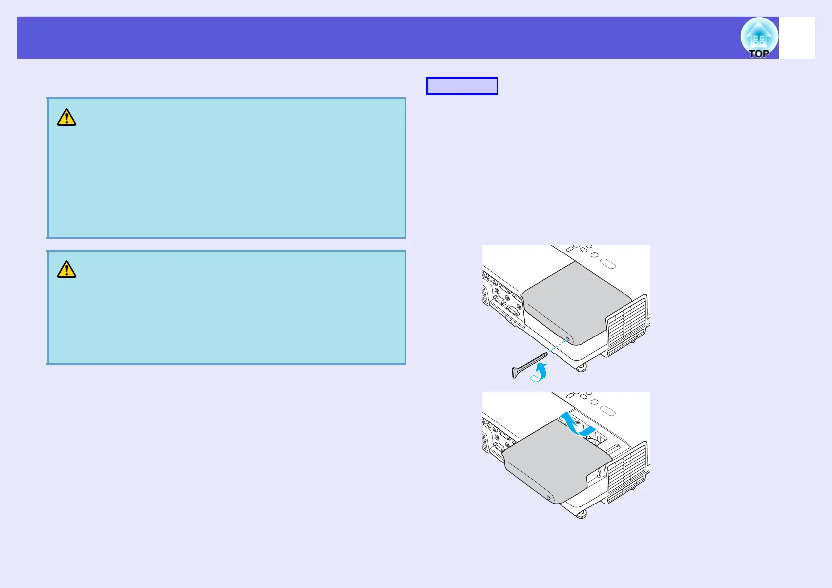 the lamp cover. If the lamp is still hot, burns or other injuries may