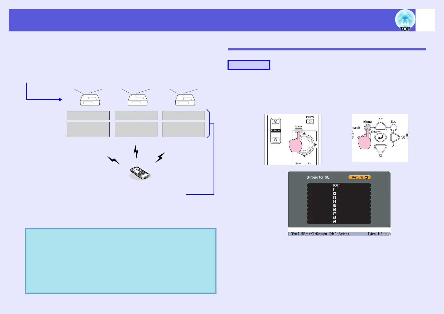 • Those for which the "Projector ID" and "ID of projector to be operated"