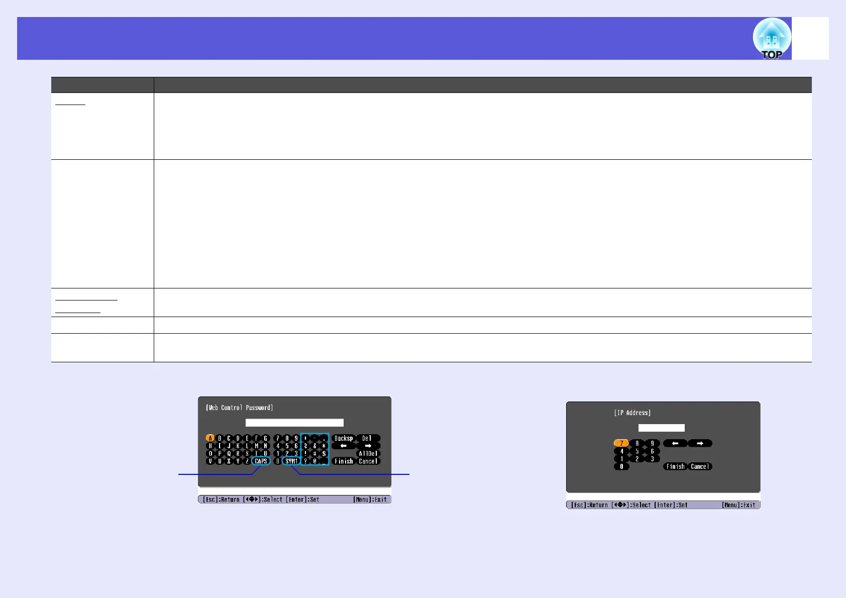Projector Name You can display an individual name to identify the projector on the network.