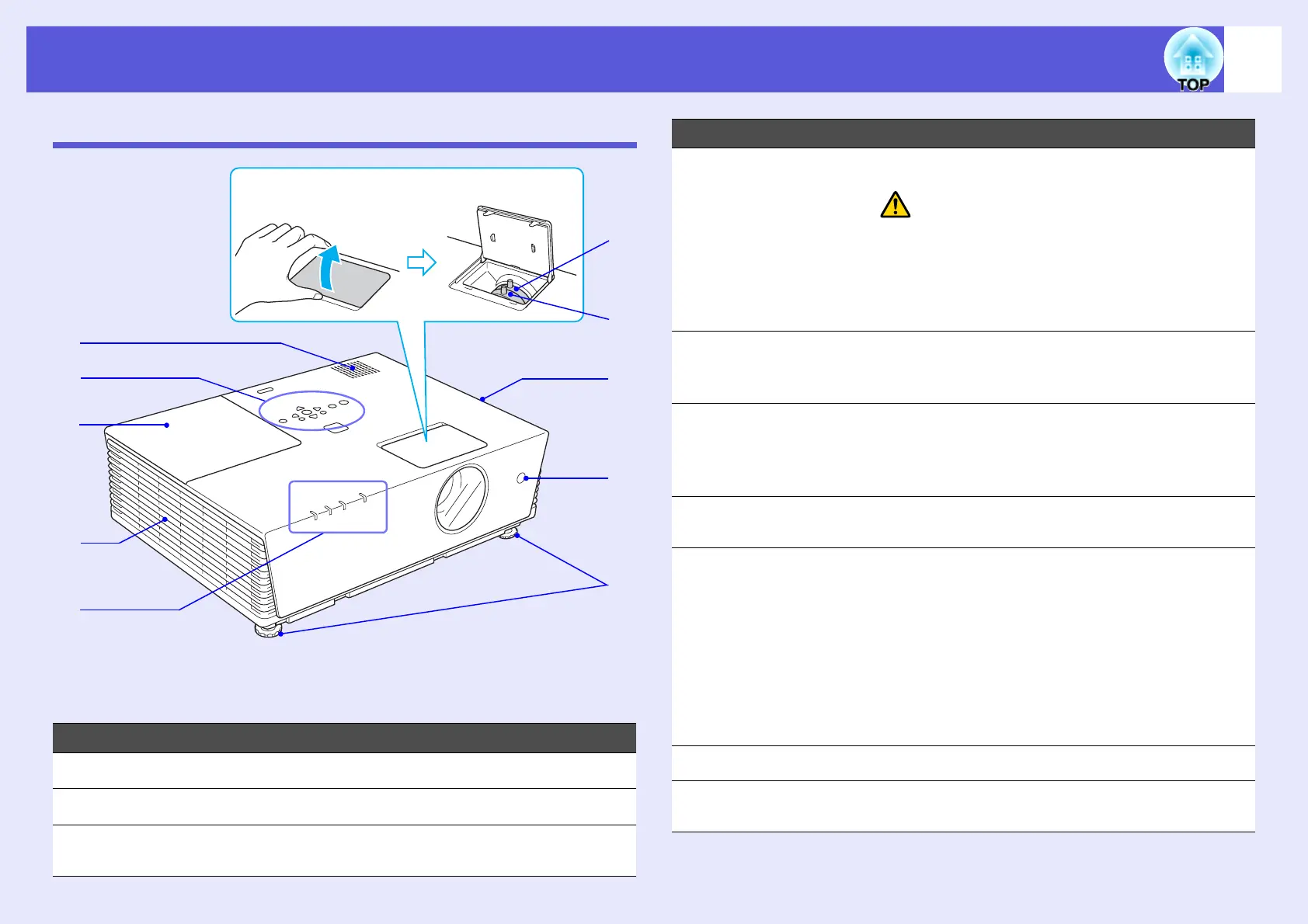Lamp cover Open this cover when replacing the projector's