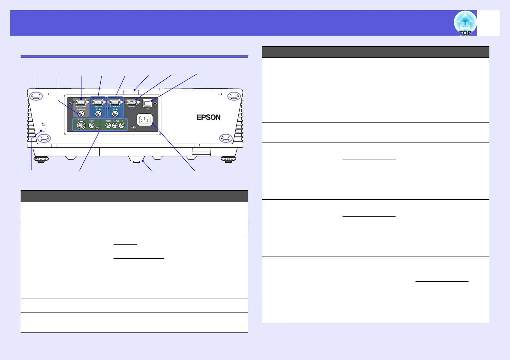 Storage feet When storing the projector upright, make sure
