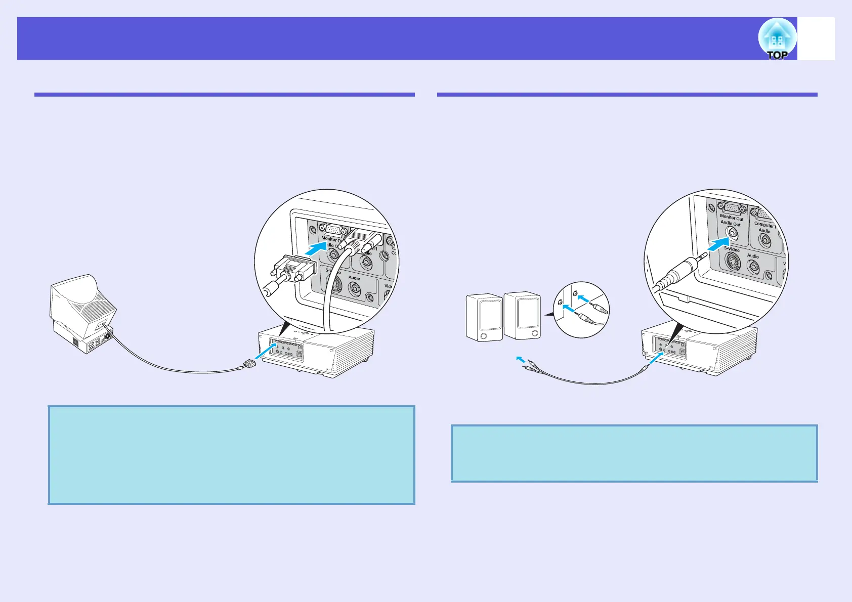 You can connect speakers with built-in amplifiers to the projector's Audio