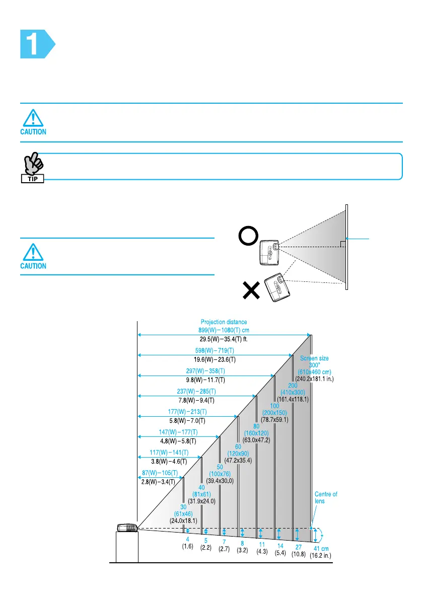Based on the projection distance, choose the best position for your projected image.