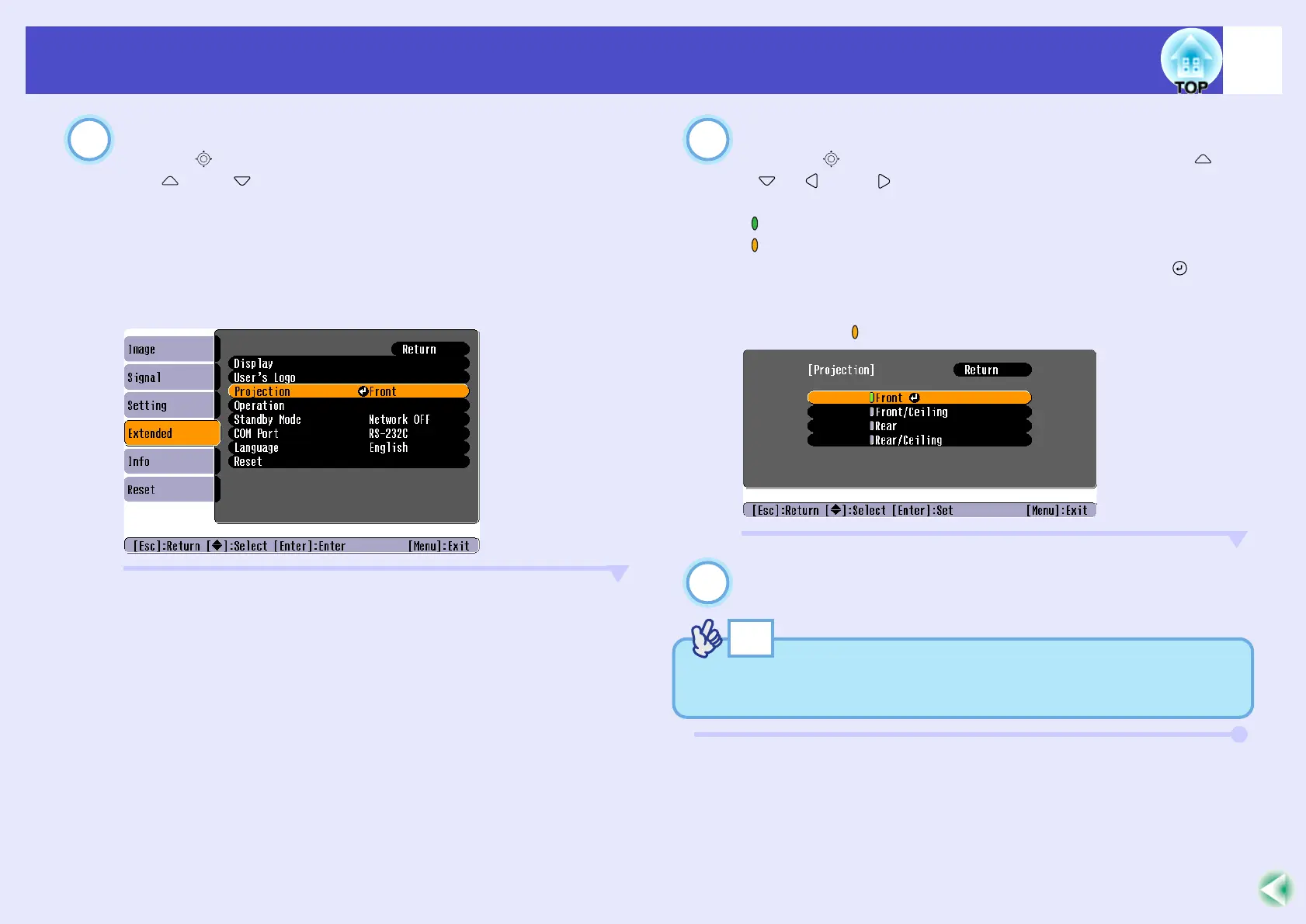 •If you press the [Enter] button when at items with a