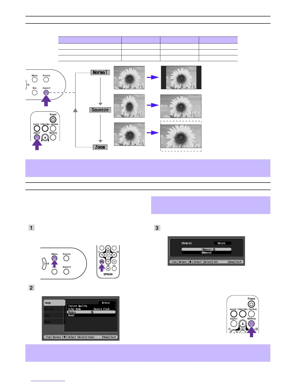 The aspect ratio changes in the following order each time you press the [Aspect] button.