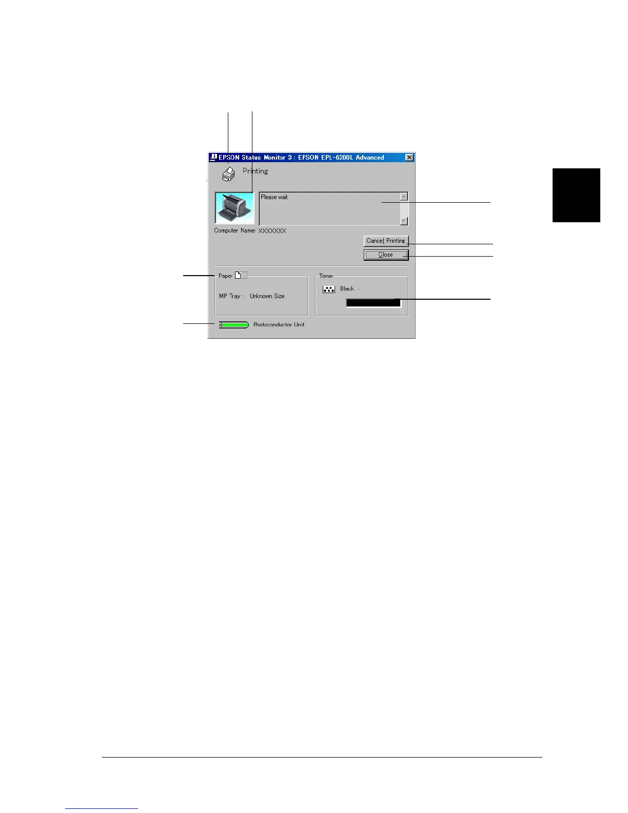 2. Printer image: The image at the upper left shows the
