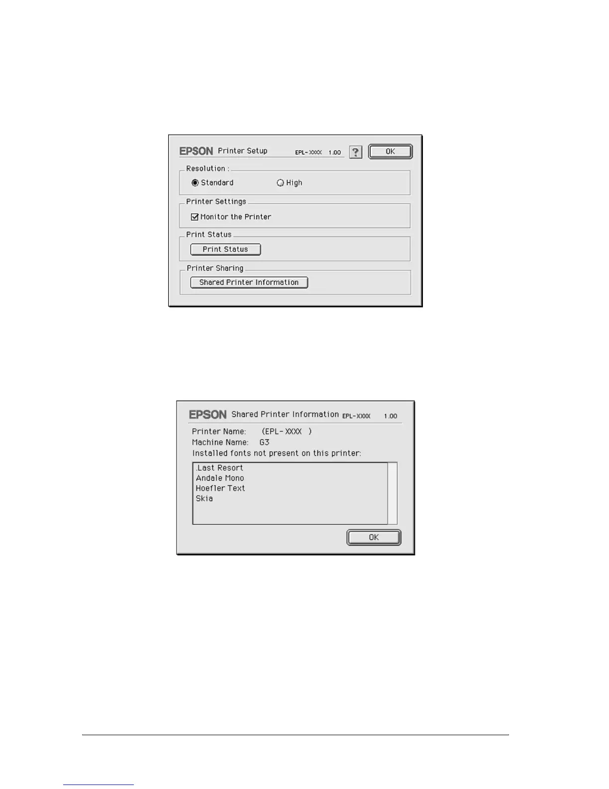 The Printer Setup dialog box appears. Under Printer Sharing