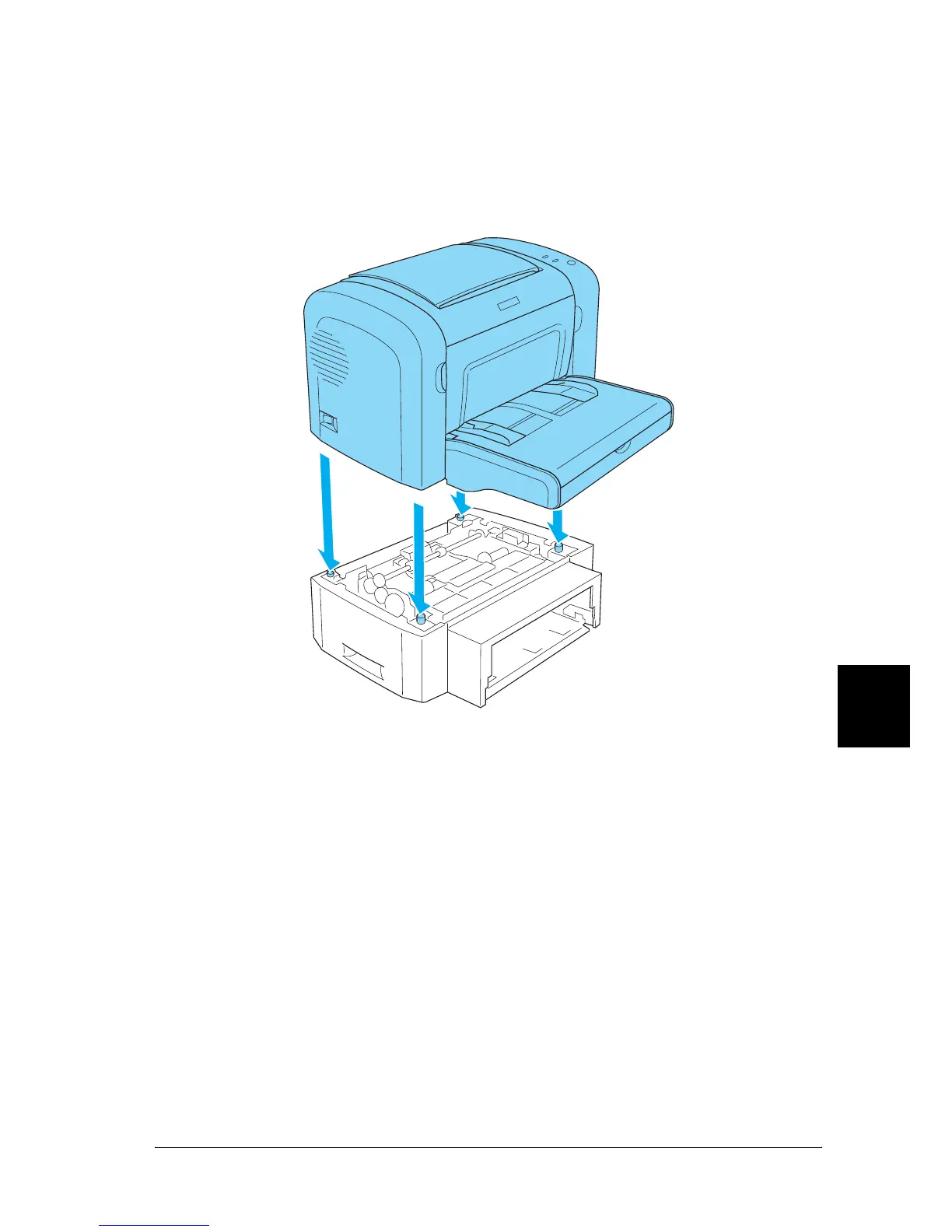 unit with the holes on the bottom of the printer, then lower