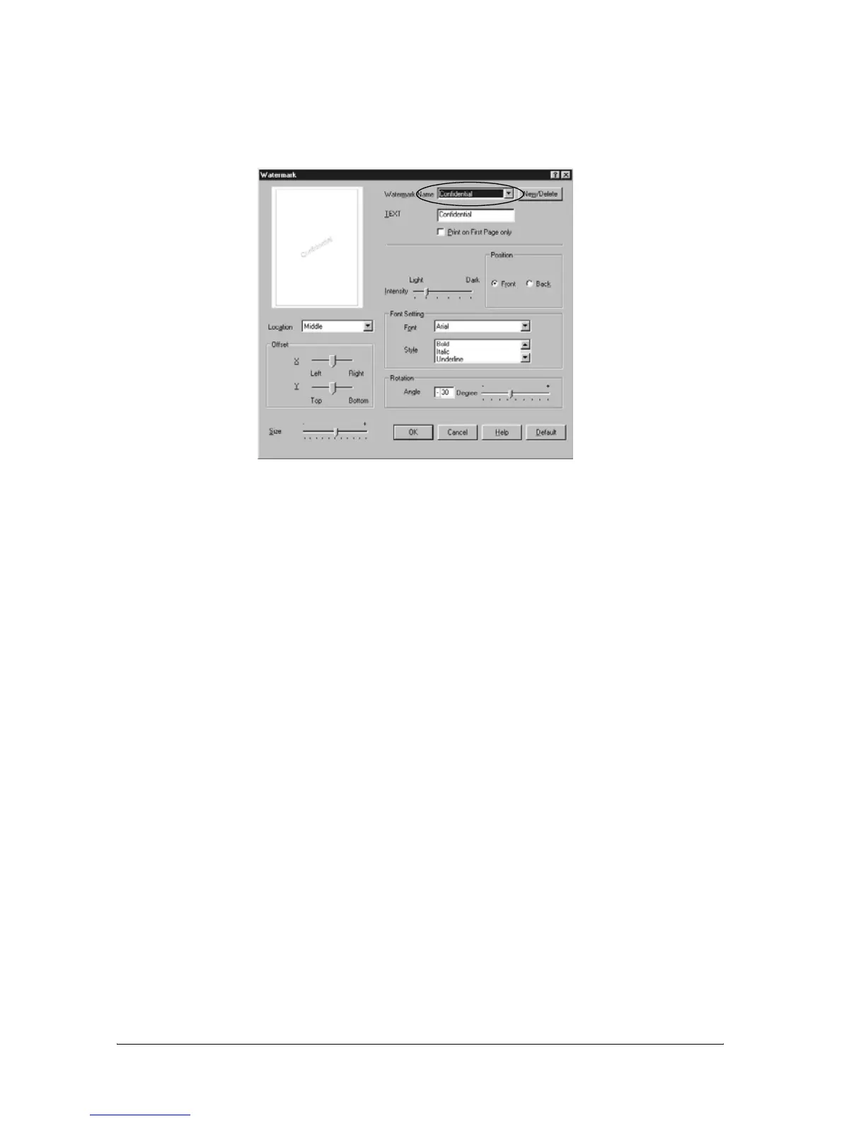 document) or Back (to print the watermark on the backside