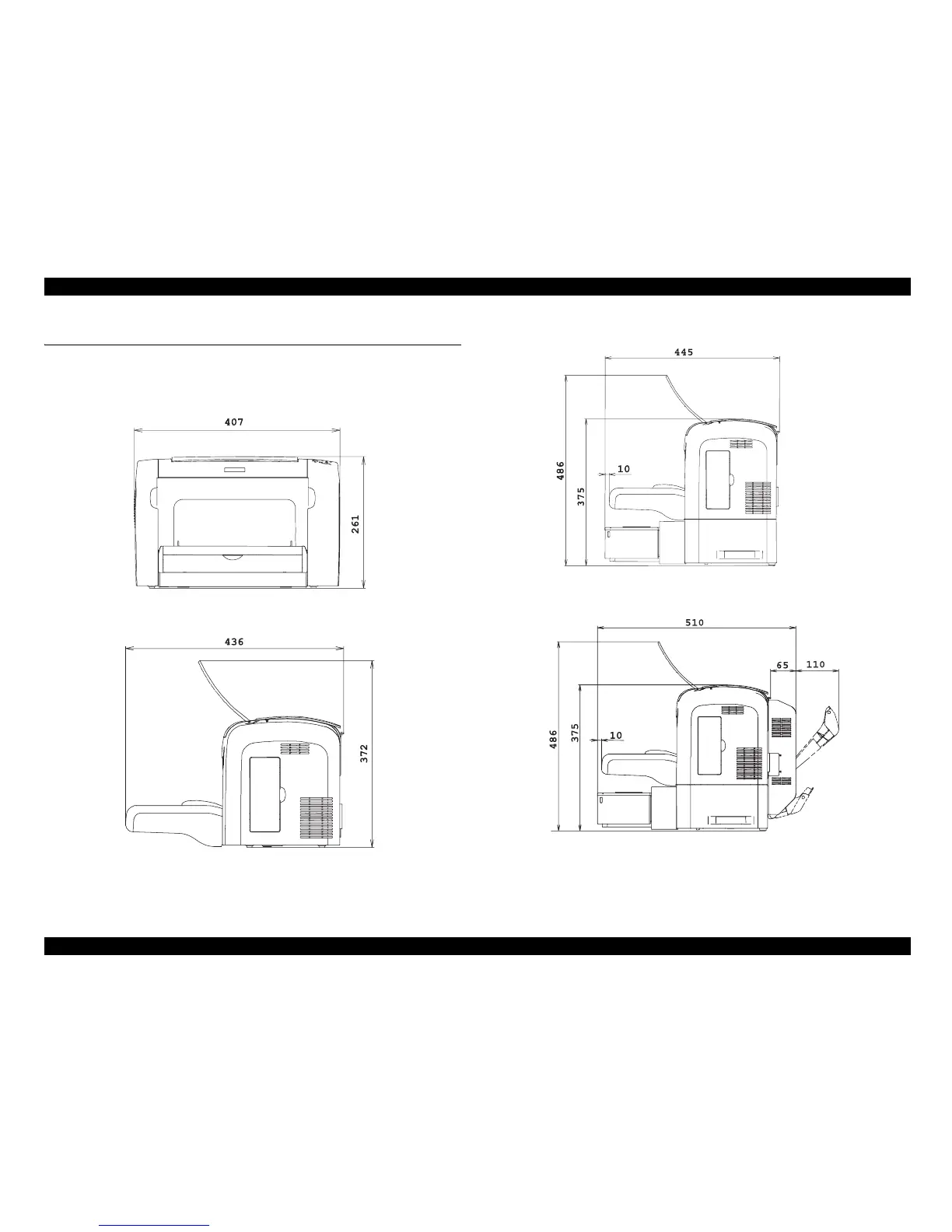 Figure 1-6 (p.33) to Figure 1-9 (p.33) show the overall dimensions of EPL-6200.