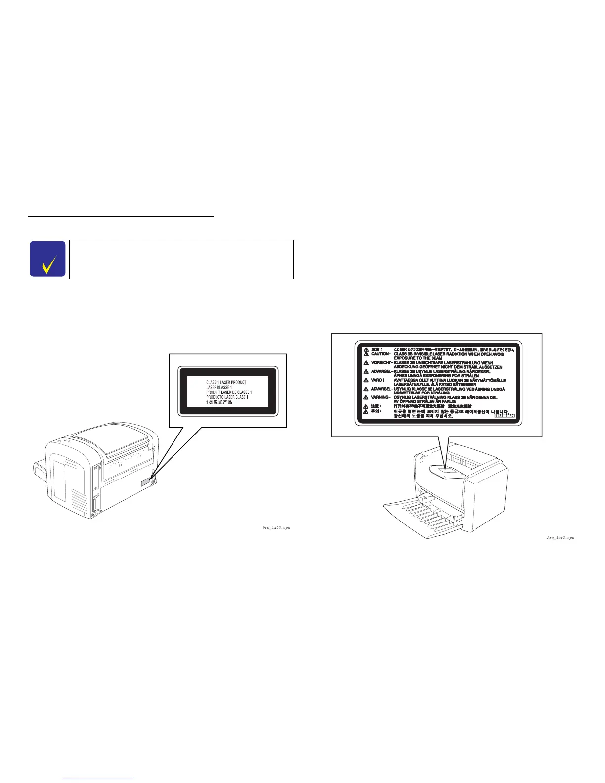 As shown below, a laser caution label is stuck on the inside of the printer.