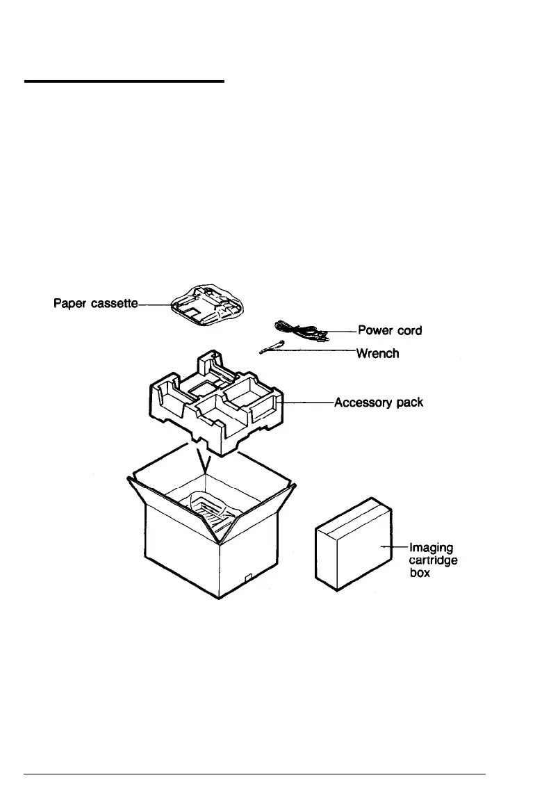 The printer and the imaging cartridge are packed separately. First,