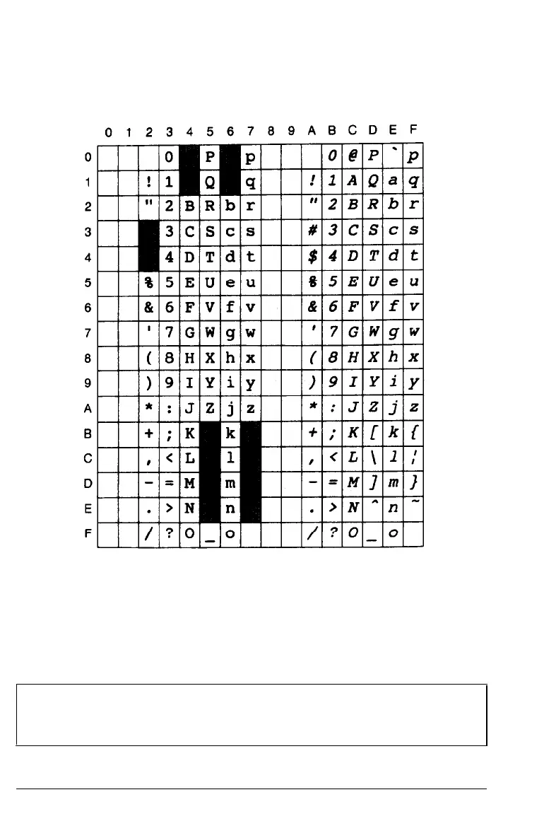 Epson Italic Character Table