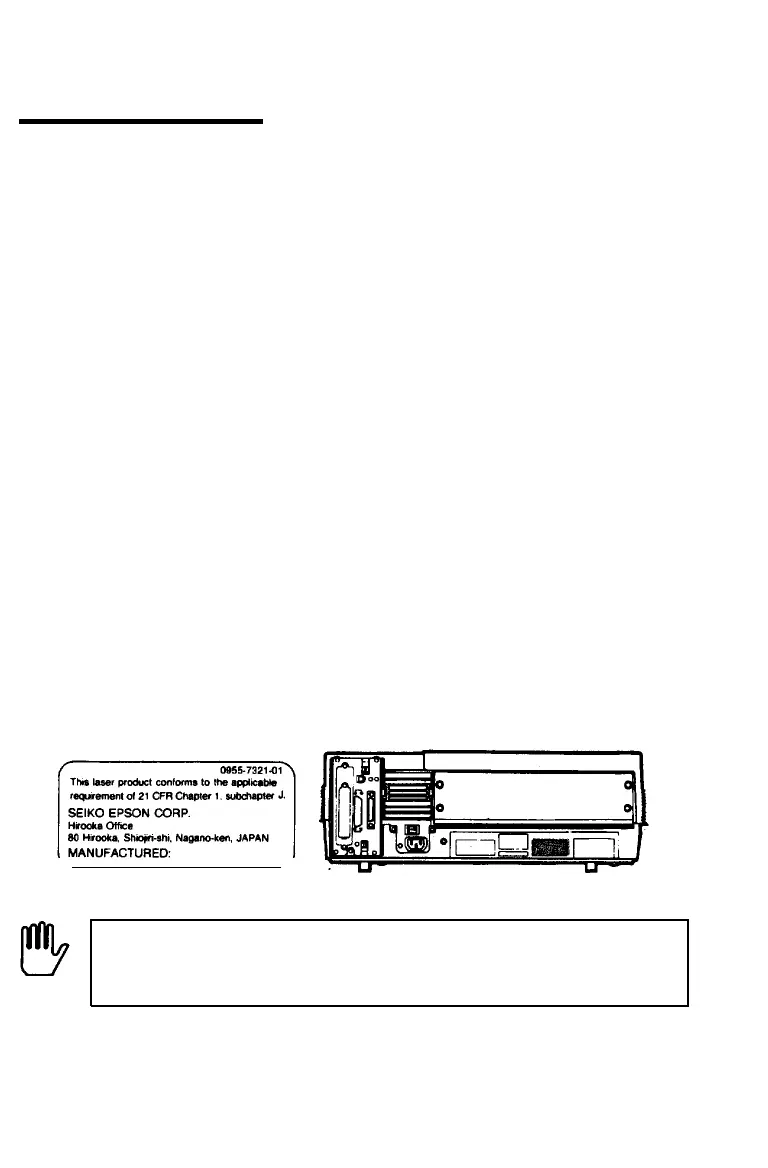 This printer is certified as a Class 1 laser product under the U.S.