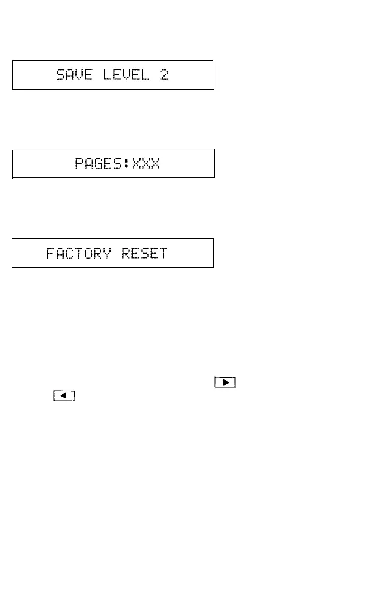 FACTORY RESET returns all Level 1 and 2 settings to their