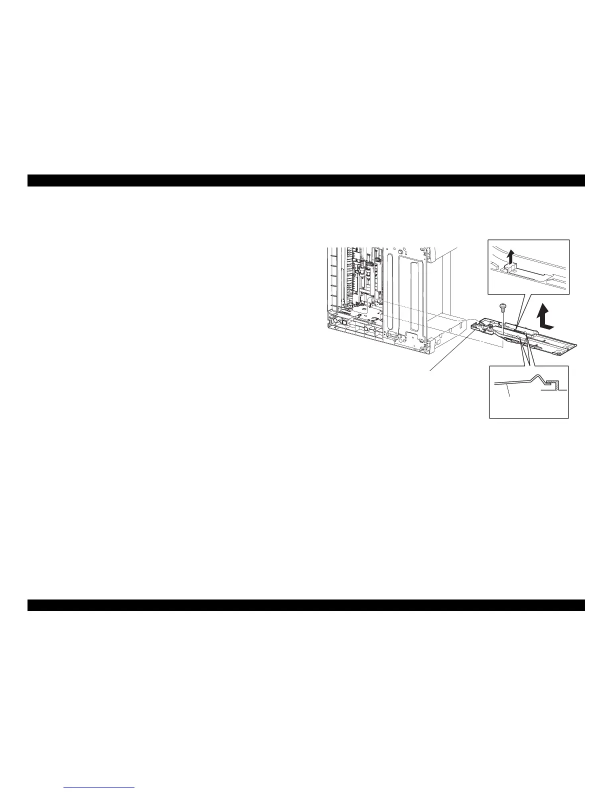13. Lift the hook of the GUIDE TRAY RIGHT, move the GUIDE TRAY RIGHT in