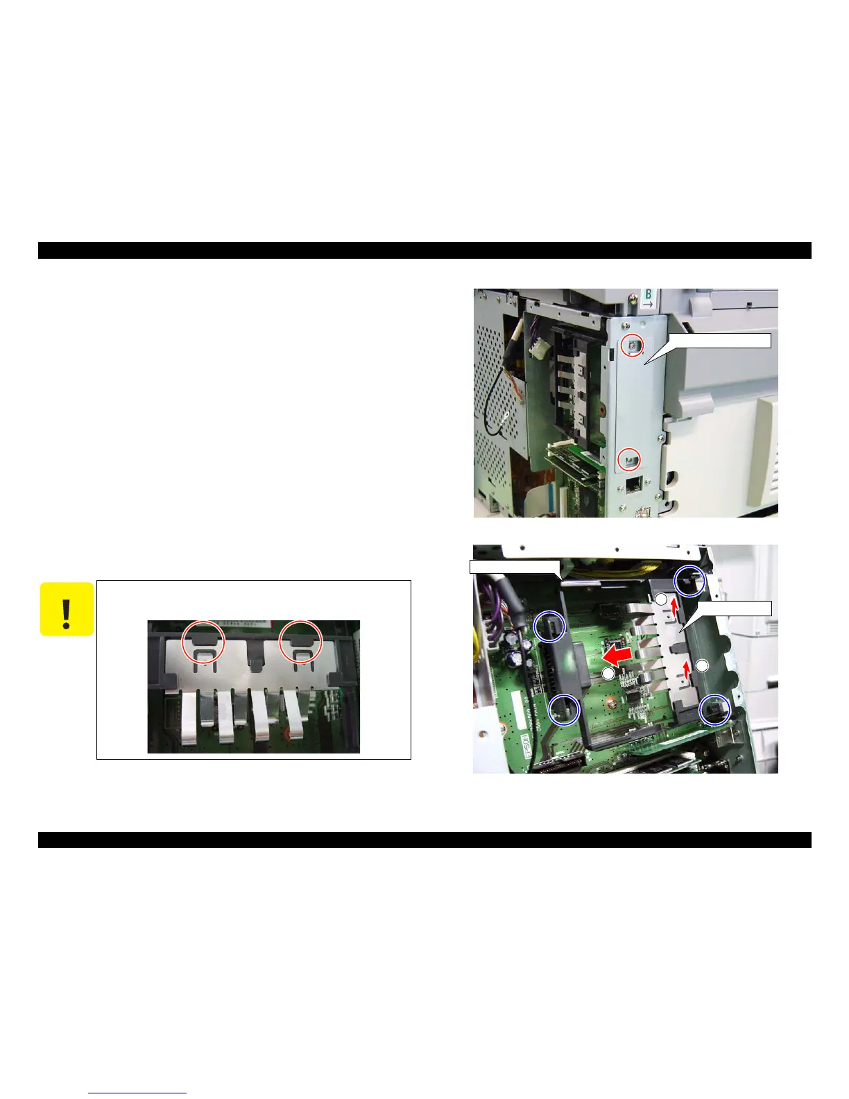 5. Release the 4 hooks securing the GUIDE RAIL TYPE-B to the BOARD ASSY.,