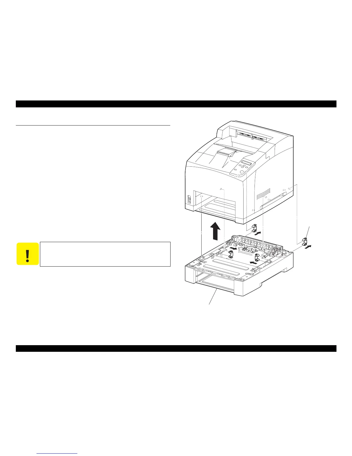 6. Lift and remove the printer body from the OPTION 550 PAPER FEEDER and put