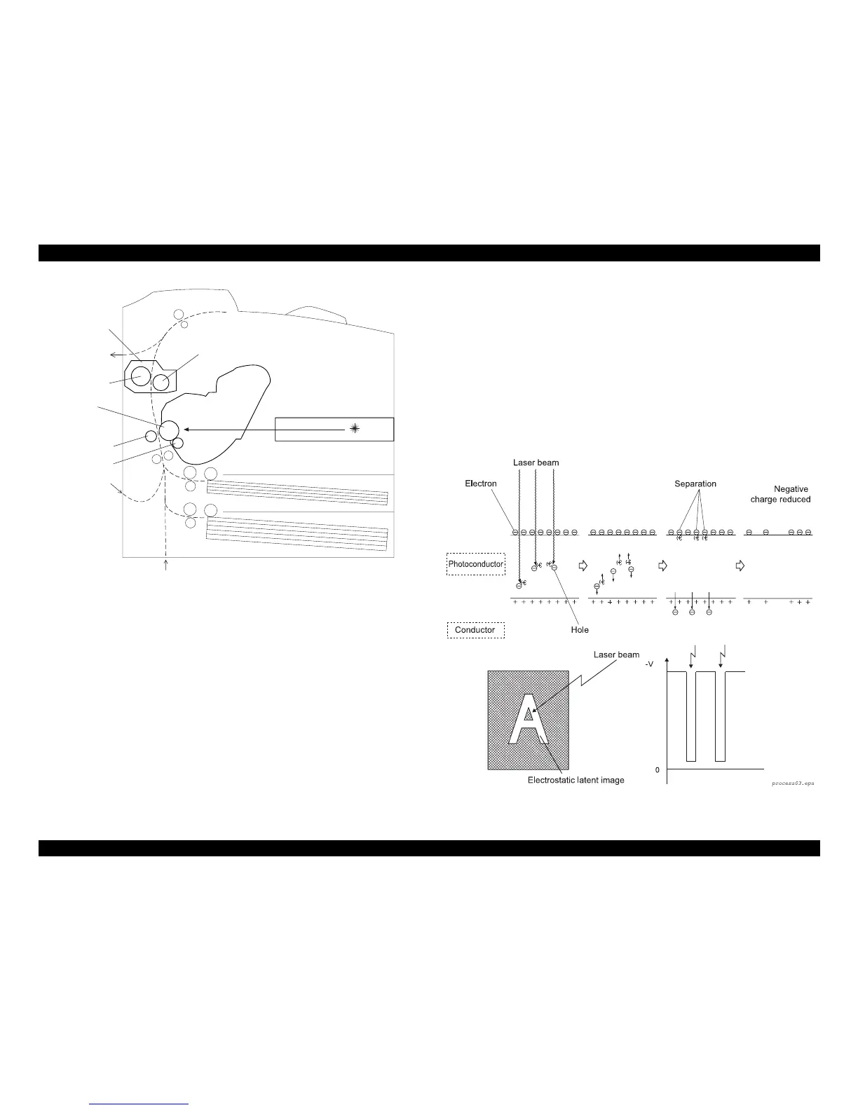 the photoconductive layer, thus reducing negative charges there. The areas of the lower