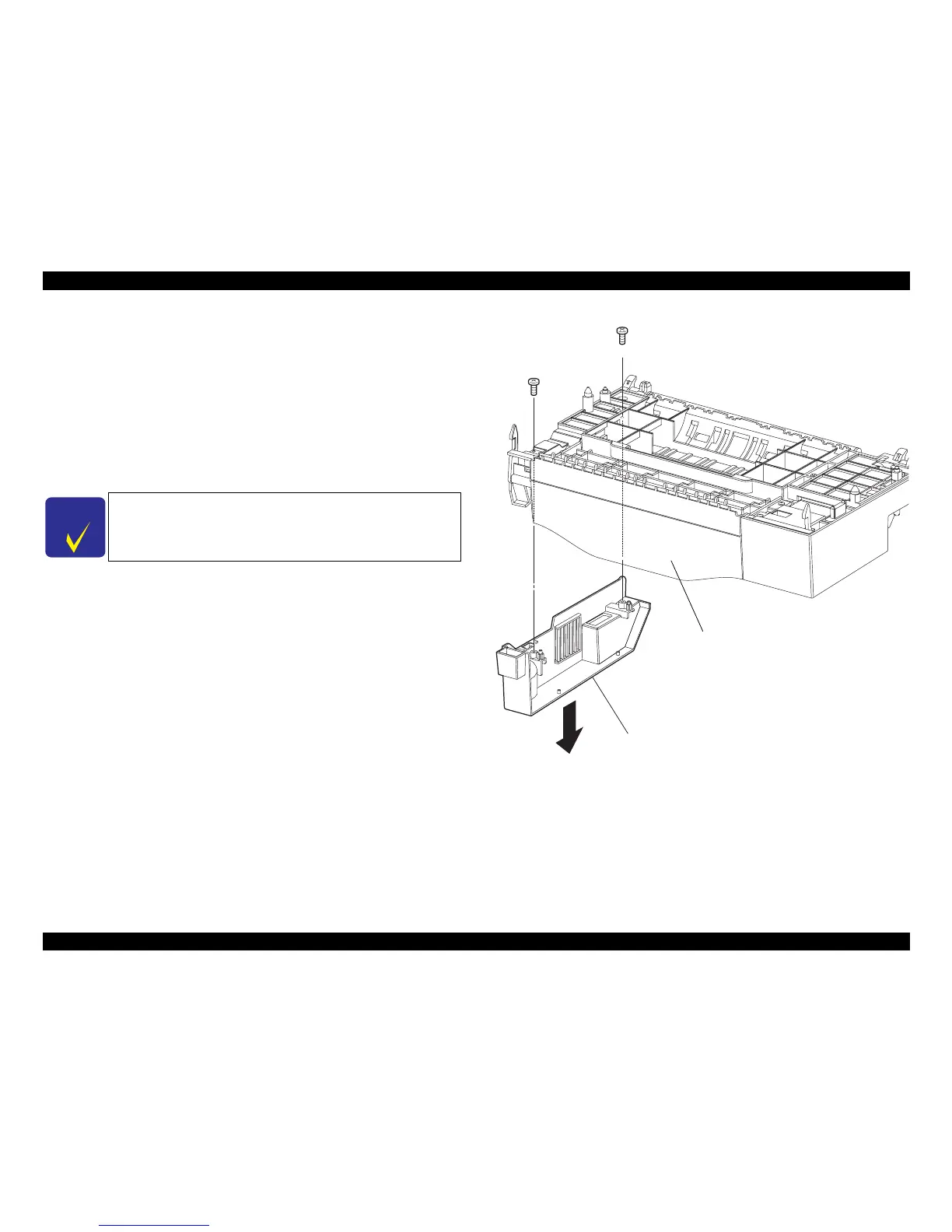 1. Remove the two screws (gold, tapping, 8mm) securing the COVER RIGHT.
