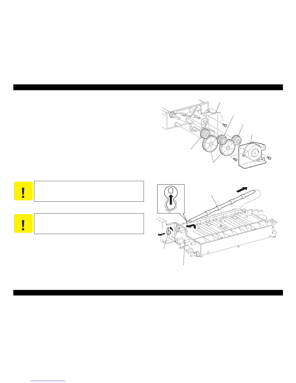 4. Remove the two screws (gold, tapping, 8mm) securing the BRACKET MOTOR
