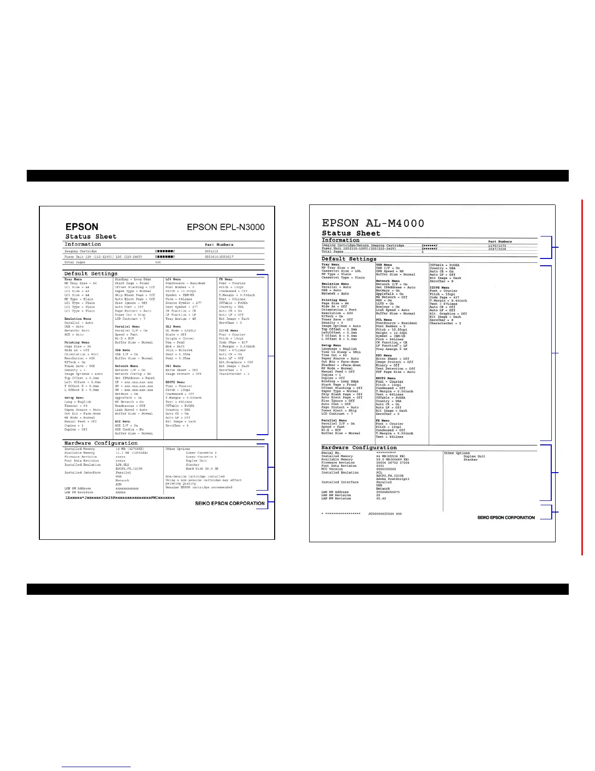 Figure 7-19. Status Sheet (EPL-N3000) Figure 7-20. Status Sheet (AcuLaser M4000N)