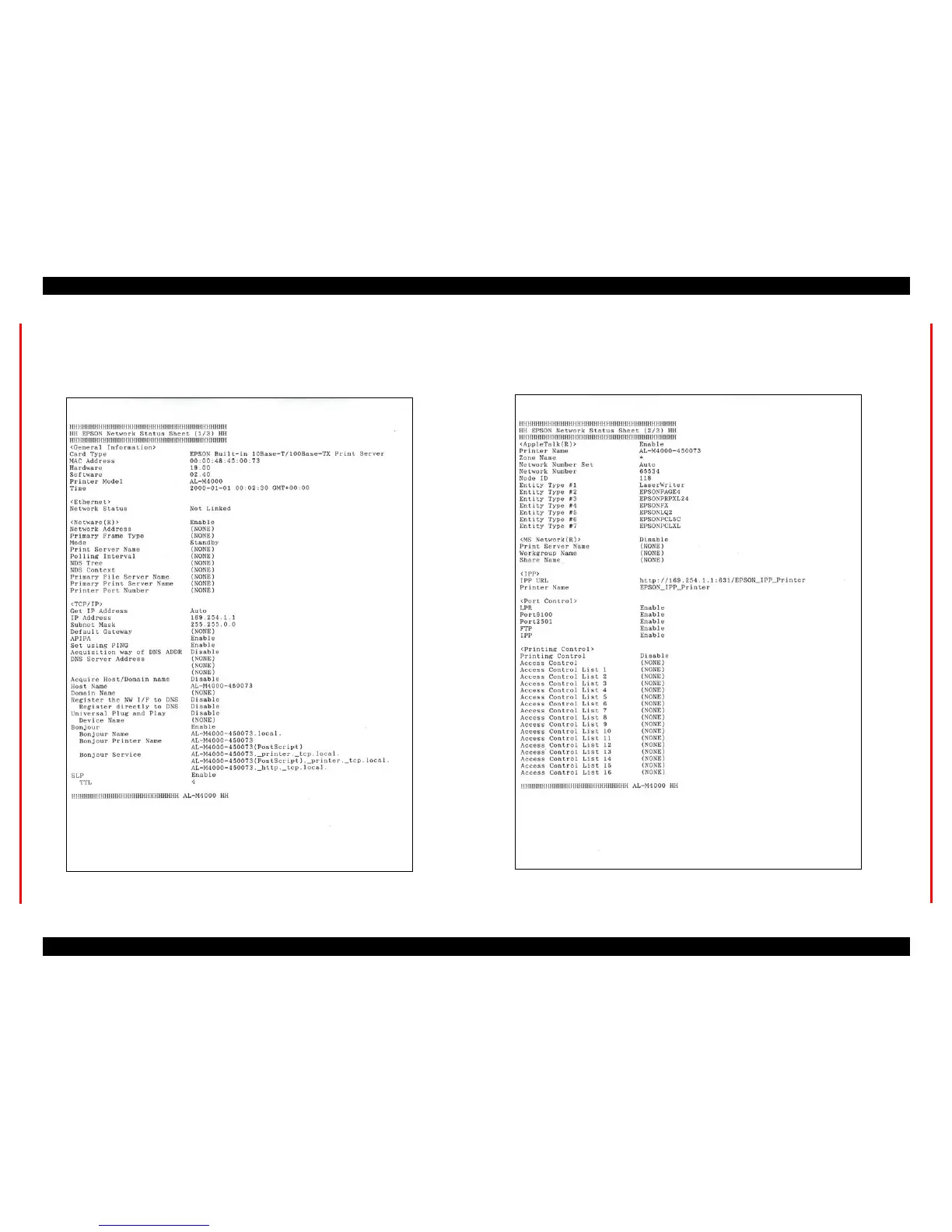 7.4.2 Network Status Sheet (AcuLaser M4000N only)